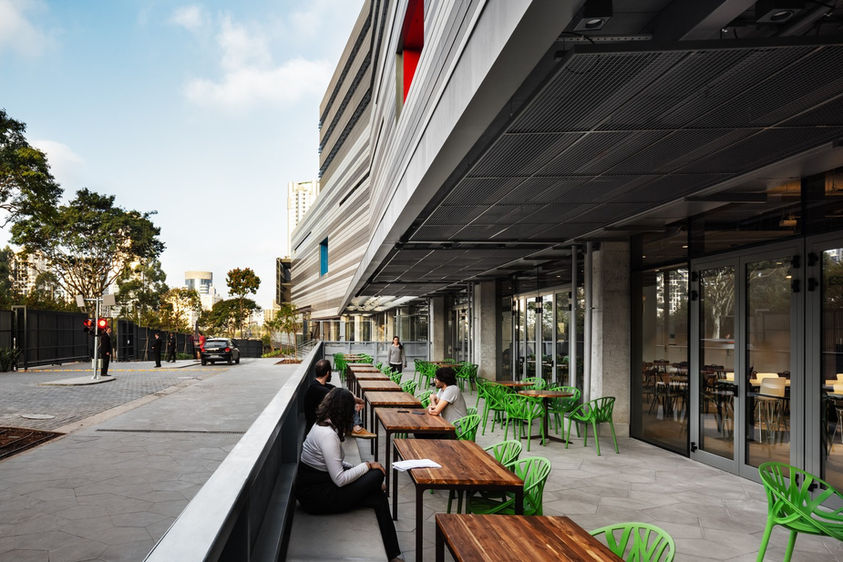 The perforated metal panels are a key element of the design of the Avenues The World School. They help to create a comfortable and inviting learning environment for students.